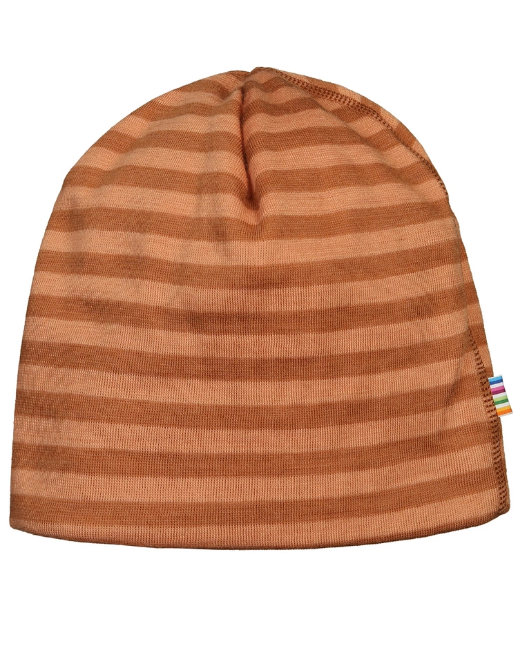 Mit ihrem weichen Material aus Merinowolle wärmt die Woll-Mütze 624 – STRIPE KIDS in copper von Joha Kopf und Ohren an kalten Tagen sehr zuverlässig. Die thermoregulierenden Eigenschaften des Materials und der bequeme Schnitt erhöhen dabei den Tragekomfort. Das zeitlose Streifendesign rundet die Kindermütze perfekt ab.